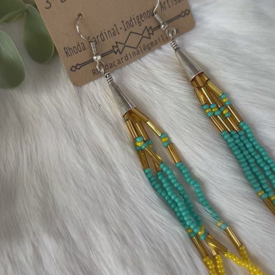 Infuse your style with a burst of sunshine and coastal charm with these handcrafted yellow and teal dangle earrings. Expertly arranged beads create a vibrant interplay of colors, enhanced by sparkling silver accents that shimmer with every movement. Lightweight and boldly expressive, these earrings are designed to capture attention and inspire smiles wherever you wear them. Stand out with this radiant, one-of-a-kind pair that’s sure to brighten your everyday look. 5" drop
